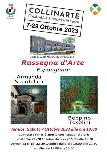 Mostra CollinarteAutore: Comune di Moruzzo La mostra presso il Forte di Santa Margherita del G. che espone le opere degli artisti Armanda Sbardellini e Beppino Tosolini rimarrà aperta fino al 29 ottobre 2023 con i seguenti orari: sabato dalle ore 15 alle ore 18 La mostra rientra nel progetto promosso dalla Comunità Collinare dove vari artisti locali esporranno nei propri comuni opere pittoriche e scultoree. |